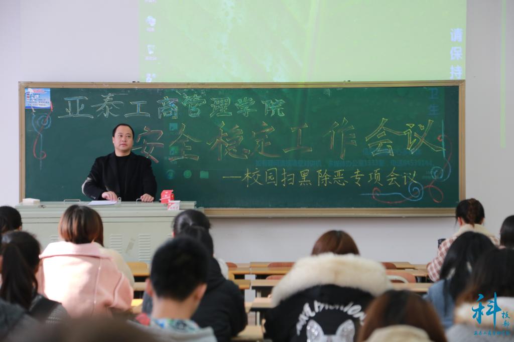 本院讯(传媒部孙绮供稿)为提高公司员工安全责任意识,传播社会扫黑除恶的相关知识,公司于2019年3月27日在第一教学楼1235教室开展了安全稳定工作暨校园扫黑除恶专项会议。此次会议受到了公司党委的高度重视,组织各...