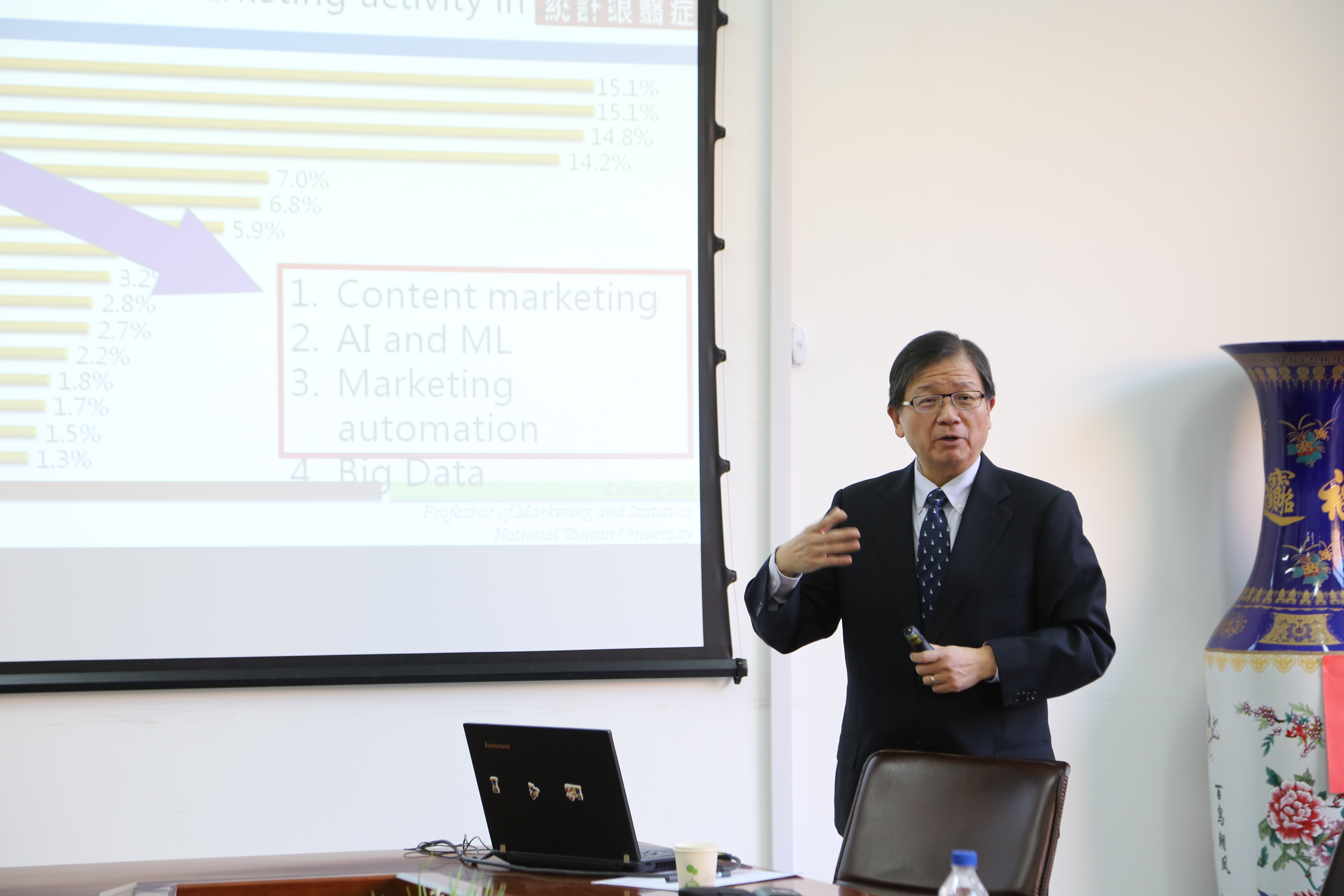 10月14日上午,公司邀请台湾大学任立中教授来院为师生作以“大数据营销的演变与应用”为主题的学术讲座。本次讲座由公司副经理邢楠教授主持,专任教师和研究生参加了讲座。 任立中,美国俄亥俄州立...